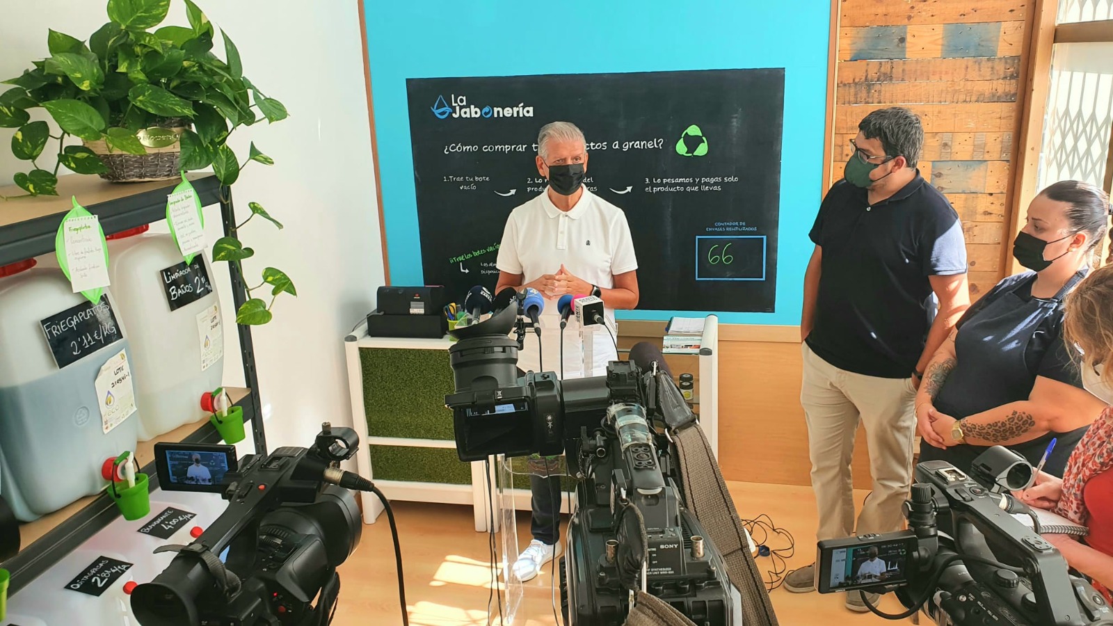 El alcalde de La Orotava, Francisco Linares, visitó la nueva empresa instalada en la Villa “La Jabonería”, un proyecto singular por su carácter social y medioambiental. La Asociación Rayuela (entidad sin ánimo de lucro) es la responsable de la empresa de inserción Social Cainana S.L. a través de la que se gestionan varios servicios como esta tienda de productos de limpieza a granel.