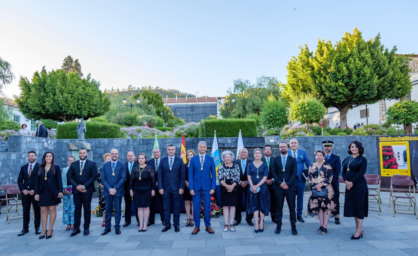 La Plaza Obispo Pérez Cáceres del municipio de Vilaflor de Chasna acogió este domingo 29 de mayo el acto institucional con el que se sella el hermanamiento entre esta localidad y la Villa de La Orotava. Recordar que, en octubre del pasado año, el Auditorio Teobaldo Power acogió el correspondiente acto institucional, tras acordar ambos municipios en sesión plenaria (14 de junio del 2021) hermanarse en base a los estrechos lazos de unión histórico-culturales, etnográficos y sociales. El acuerdo se tomó, por unanimidad de las corporaciones municipales, y la propuesta deriva de una moción del grupo socialista en el año 2017. El principal fundamento de la misma está en la conexión a través del Camino Real de Chasna, una ruta histórica que comunica desde hace más de quinientos años las comarcas del Norte y del Sur de la isla, y fue una vía de comunicación mercantil, territorial, burocrático, social y cultural entre ambos municipios.