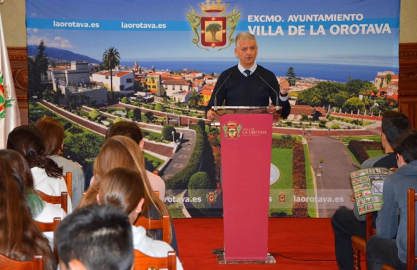 El alcalde de La Orotava, Francisco Linares, recibió en la mañana de este lunes 3 de abril a los alumnos de 4º de la ESO, del IES. Gabriel Ferrater i Soler de Reus (Tarragona). Los alumnos han descubierto las tradiciones, historia, costumbres... del municipio villero. Y visitaron el Palacio municipal, el Ayuntamiento, donde el mandatario villero les ofreció una breve charla.