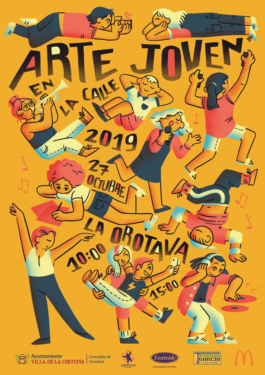 Arte Joven en la Calle, ya tiene cartel anunciador. Entre la veintena de carteles que se han presentado al concurso Crearte, convocado por la Concejalía de Juventud del Ayuntamiento de La Orotava para promocionar esta muestra, ha resultado ganadora la obra presentada por Alicia González García, quien recibirá un premio de 200 euros. La popular feria se celebrará el próximo 27 de octubre de 10:00 a 15:00 horas en el casco histórico de la Villa.