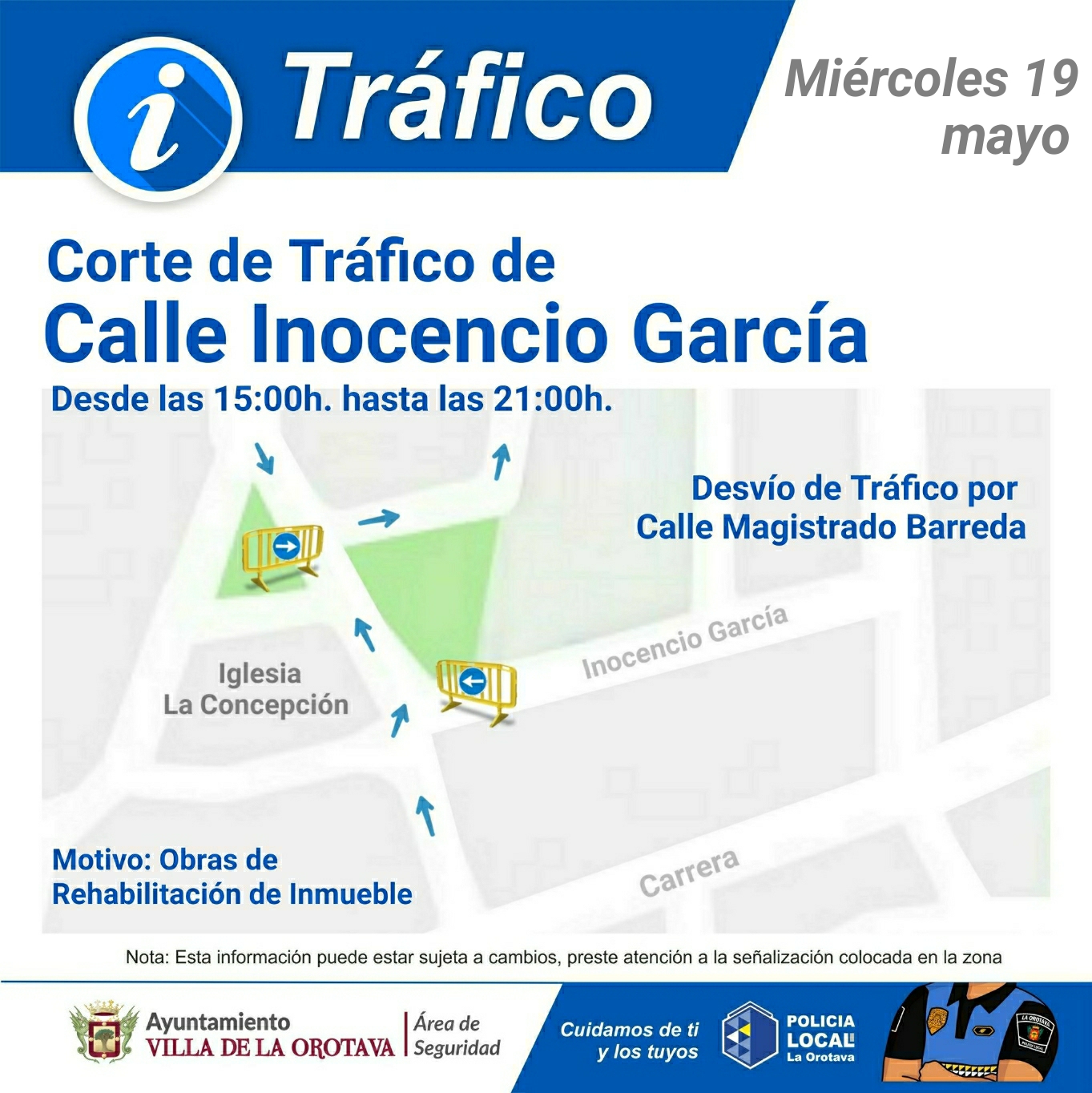 18/05/2021Míércoles 19 de mayo. Desde las 15:00 hasta las 21:00 horas. Motivo: Obras de rehabilitación de inmueble. Desvío de tráfico por calle Magistrado Barreda