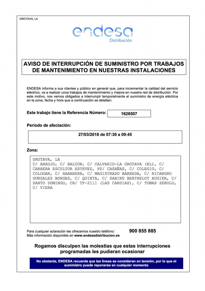 16/03/2018Aviso por interrupción del suministro el día 27 de marzo en los puntos indicados en la imagen: