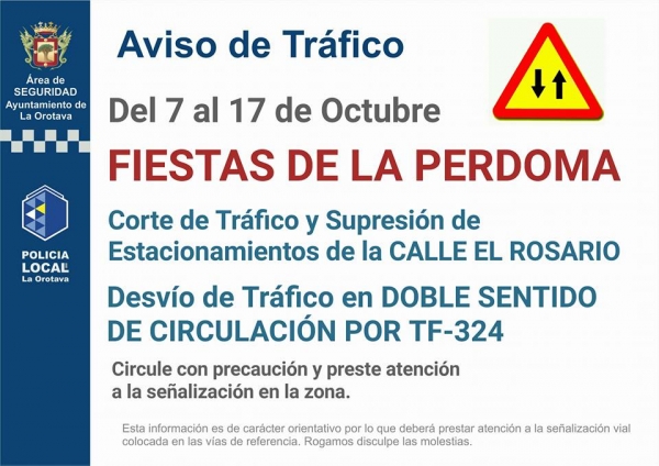 Aviso de tráfico por la celebración de las Fiestas de La Perdoma del 7 al 17 de octubre