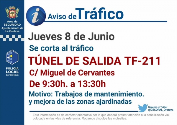 Aviso de tráfico: Se corta el tráfico en túnel de salida TF-211