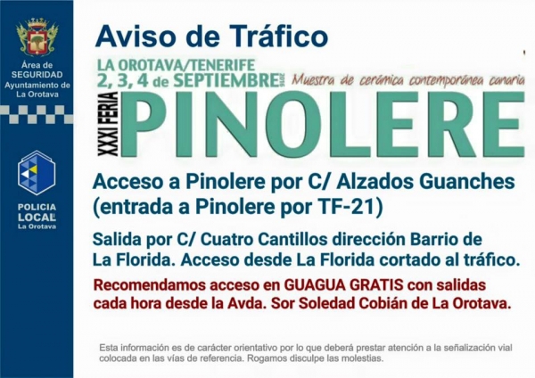 Aviso para los días 2, 3, y 4 de septiembre por la Feria de Pinolere