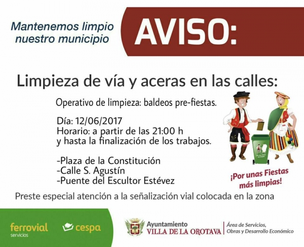 Aviso por limpieza en vías y aceras
