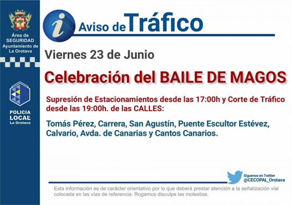 AVISOS de TRÁFICO por la celebración del Baile de Magos