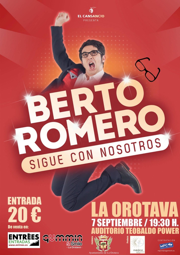 Esta cita con Berto Romero, que cuenta con la colaboración del Ayuntamiento de La Orotava, tendrá lugar el 7 de septiembre en el Auditorio Teobaldo Power de La Orotava, a las 19.30 horas.