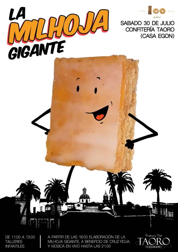 La emblemática Confitería Taoro de La Orotava, conocida popularmente como Casa Egon, celebra hoy el centenario de su apertura con la elaboración de una milhoja gigante y solidaria, a beneficio de Cruz Roja. Los actos comenzarán en el Jardín Victoria con talleres infantiles de manualidades y de elaboración de galletas, de 11:00 a 13:00 horas, y continuarán entre las 16:00 y las 21:00 horas con música en directo para amenizar la elaboración y degustación de una enorme milhoja que, según destaca Ángel Luis Rocío, tendrá varias decenas de metros de longitud.