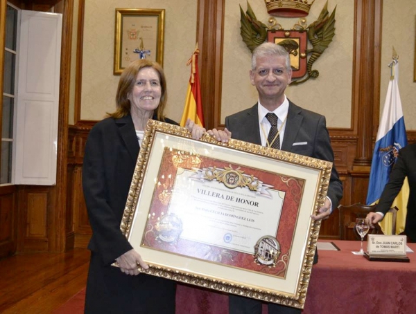 El Salón Noble del Ayuntamiento de La Orotava acogió en la tarde de este jueves 5 de noviembre el acto de reconocimiento a la escritora y poeta orotavense, Cecilia Domínguez, como Villera de Honor. Esta propuesta del alcalde Francisco Linares, fue aprobada por unanimidad por el Pleno del Ayuntamiento celebrado el pasado septiembre.