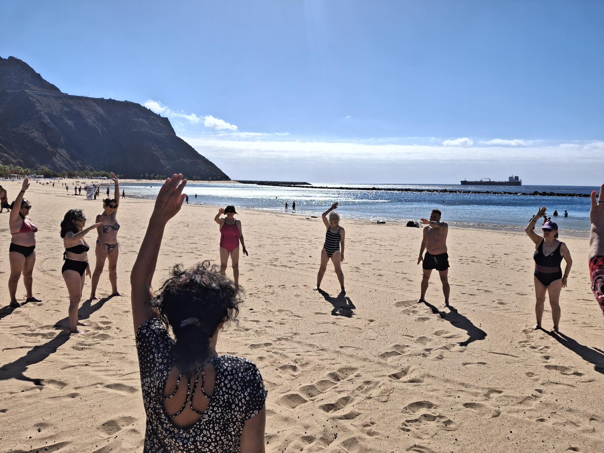 El programa social contempla salidas a la playa de Las Teresitas donde disfrutan de actividades saludables