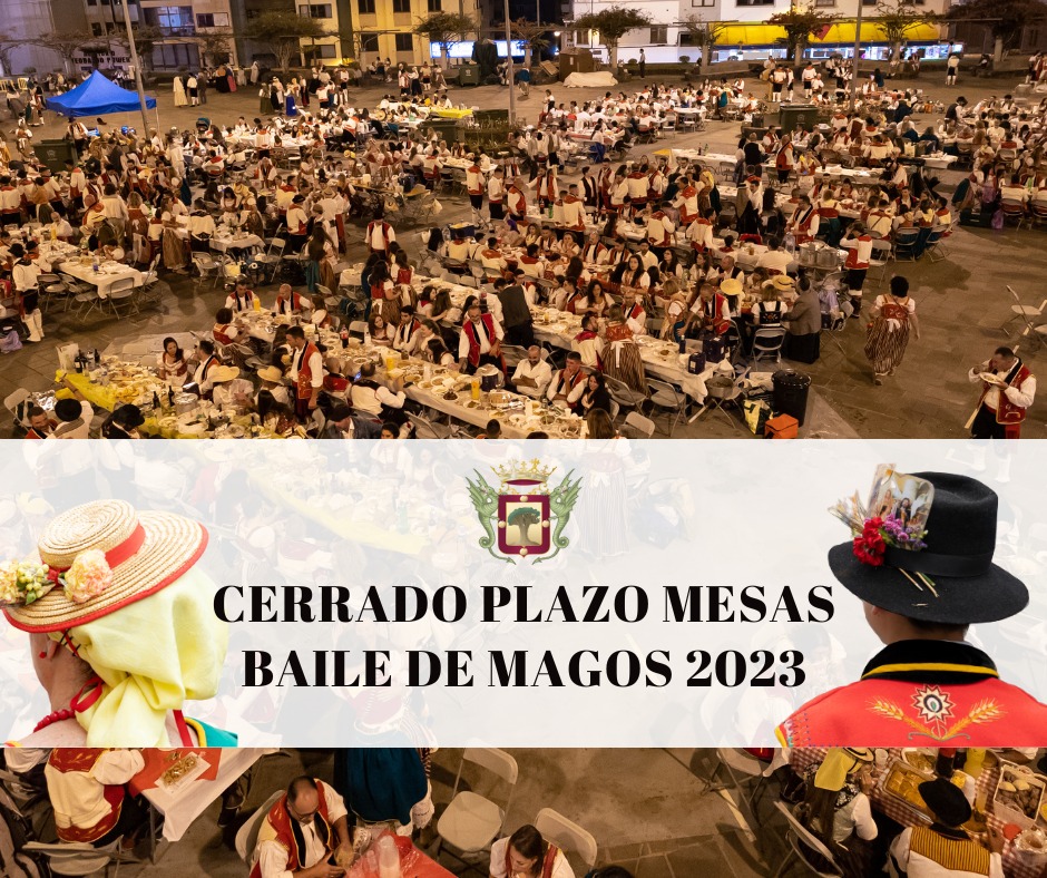 La concejalía de Fiestas del Ayuntamiento de La Orotava comunica que hoy, viernes 2 de junio, se ha cerrado el plazo para presentar la solicitud de autorización para ocupar Mesas y Sillas en la Plaza del Quinto Centenario, con motivo de la celebración del Baile de Magos, debido a que se han cubierto las 135 mesas que recoge las Bases Reguladores y el Plan de Seguridad del evento.