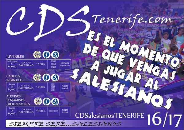 El C. D. Salesianos Tenerife, en el que militan más de 300 jugadores de distintas categorías y disciplinas deportivas, comienza su temporada con la campaña de captación para juveniles el miércoles 17 y su fiesta inicial para el resto de categorías, el próximo 29 de agosto.