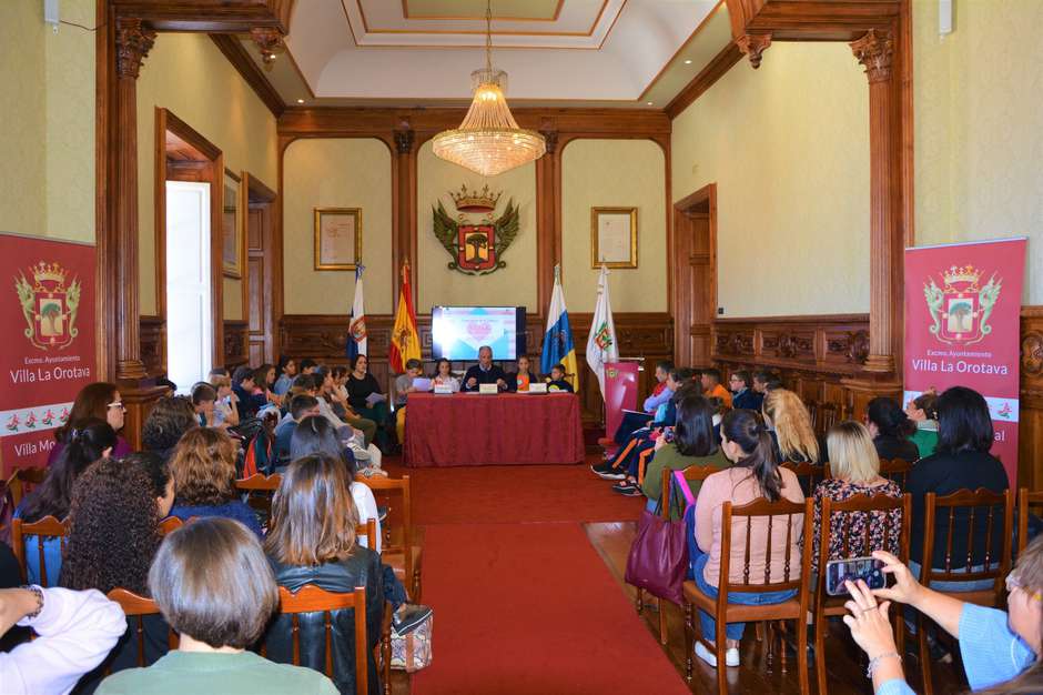 Medio centenar de niños y niñas de 5 y 6º de Primaria del colegio San Agustín, de la zona centro, y del CEIP Víctor Rodríguez Jiménez de Benijos, participó en la mañana de este martes, 17 de abril, en un pleno infantil celebrado en el Salón de Sesiones del Ayuntamiento de La Orotava, presidido por el alcalde-presidente de la institución local, Francisco Linares. También contó con la concejala delegada de Bienestar Social, Belén González Rodríguez, y el edil Juan Dóniz.