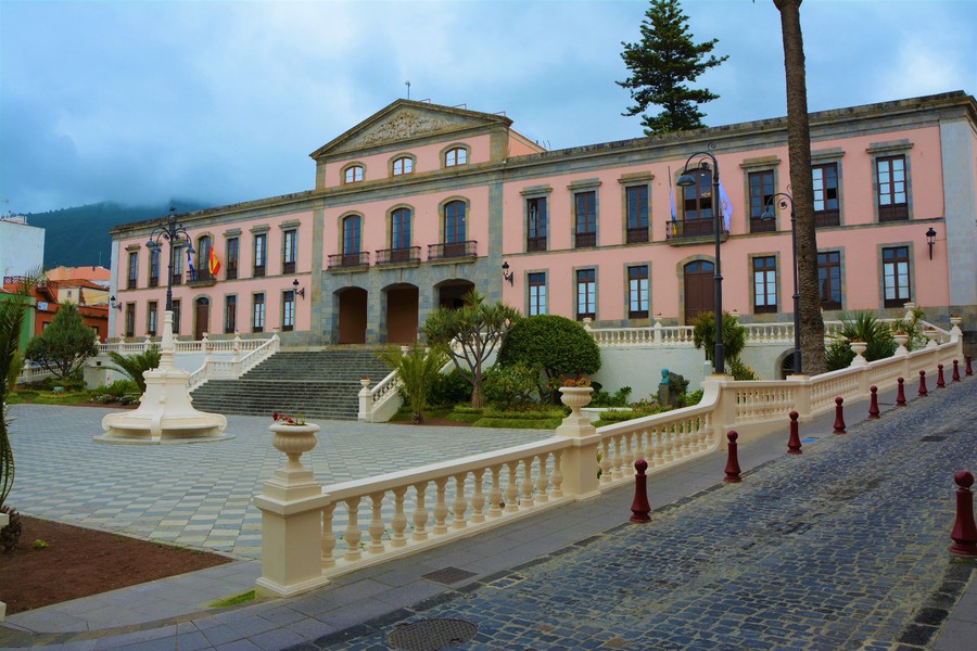 Las banderas de la fachada del Ayuntamiento de La Orotava ondean a media asta en señal de dolor y respeto por las víctimas.
