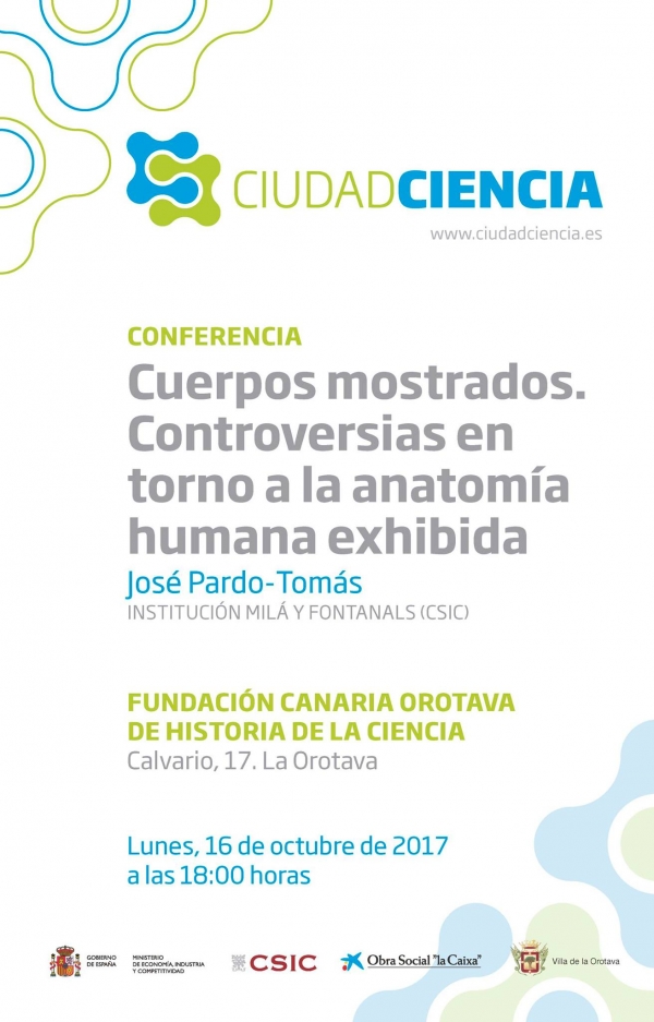 La sede de la Fundación Canaria Orotava de la Ciencia, en la Calle Calvario, 17. acoge hoy lunes, a las 18:00 horas, la conferencia 'Cuerpos Mostrados. controversias en torno a la anatomía humana exhibida' a cargo de José Pardo Tomás. Institución Milá y Fontanals (CSIC)