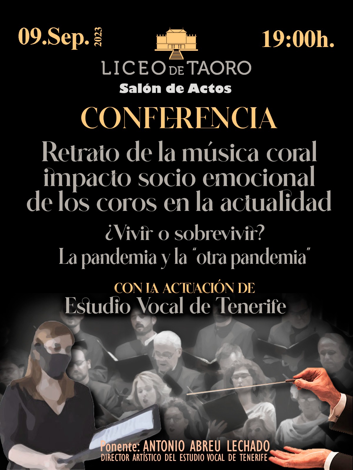 Se trata de una interesante conferencia, dirigida a coros, pero que puede ser muy útil para todos los colectivos culturales que hayan visto mermada su actividad por la pandemia. El sábado 9 de septiembre, a las 19:00horas, en el salón de actos de la Sociedad Liceo de Taoro.