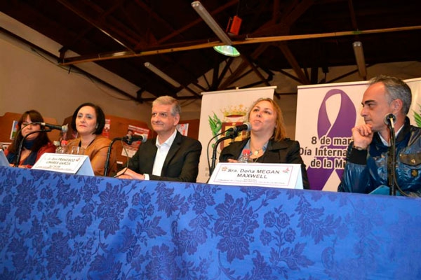 El alcalde Francisco Linares García, y la concejala de Políticas de Igualdad, inauguraron el acto, junto a la popular escritora Megan Maxwell y el periodista Enrique Reyes, coordinador del evento.
