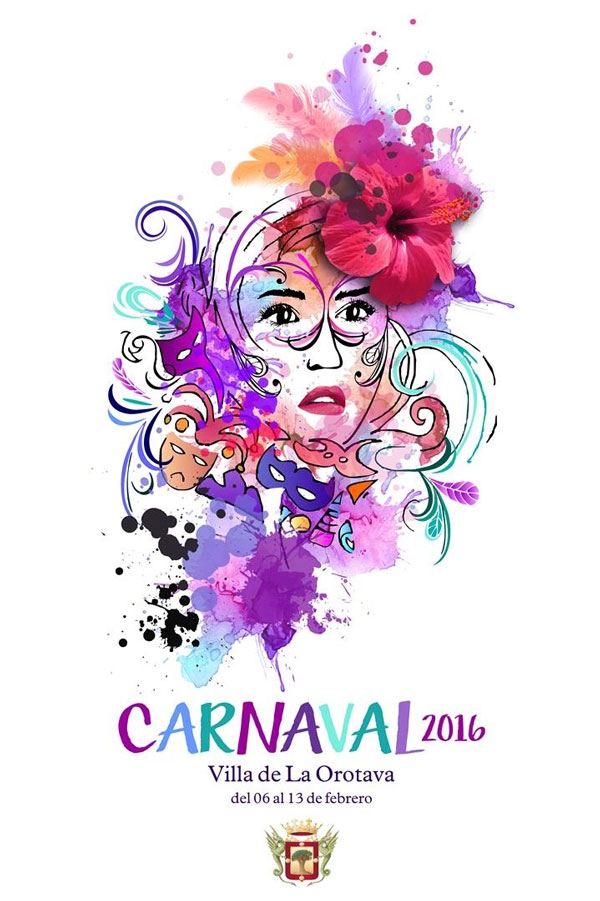 El cartel anunciador de las fiestas de Carnaval 2016 de La Orotava es obra de Alejandra Hernández Padrón de la empresa de diseño Delisan, y lleva por título “Villeros y Máscaras”.