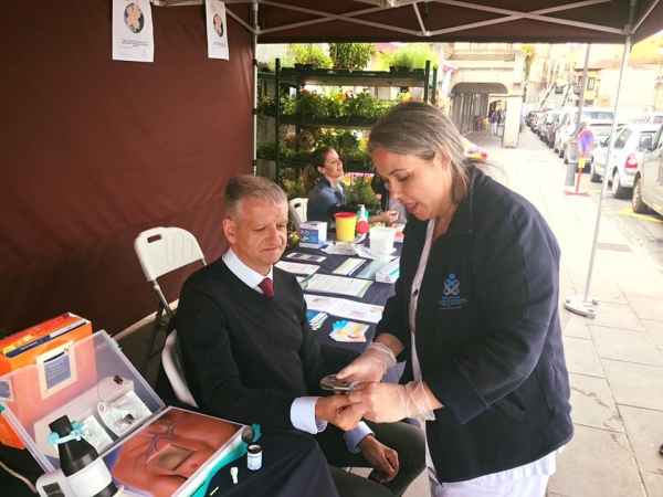 Se contó a lo largo de la mañana con personal— enfermeras y auxiliares de enfermería— del CAE de La Orotava. Entre otras cosas se realizaron controles de glucemia e hipertensión, y en algunos casos se aconsejó visitar al médico de cabecera para revisiones más exhaustivas. Asimismo, contaron con diverso material de muestra e informativo para concienciar a los ciudadanos que pasaban por el stand sobre la importancia de cuidarse y tener hábitos de vida saludable en pro de la salud.