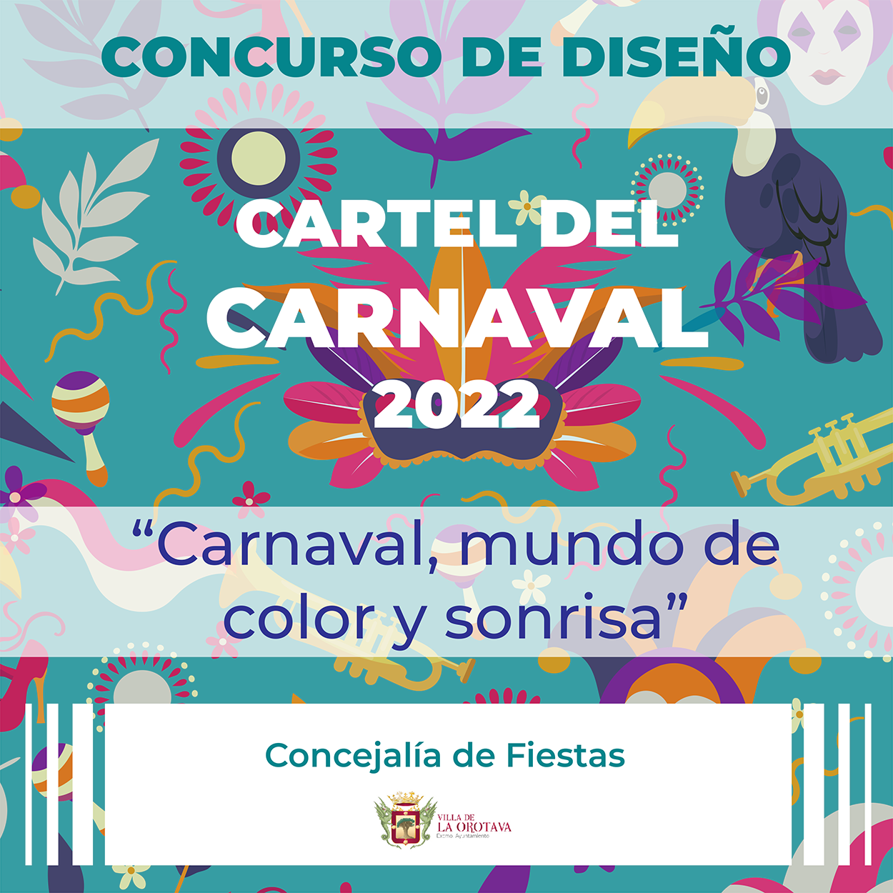 La Concejalía de Fiestas del Ayuntamiento de La Orotava, que dirige el edil Alexis Pacheco, ha convocado de nuevo el concurso para elegir el cartel anunciador del carnaval villero del próximo 2022, aunque la celebración de los actos en la calle, del 28 de febrero al 3 de marzo, dependerá de la situación sanitaria del momento.