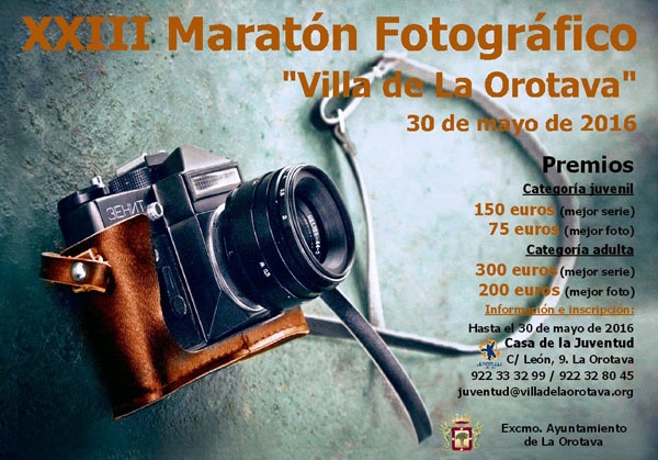 Como en sus veintidós ediciones anteriores el tema del certamen estará vinculado al municipio de La Orotava y se dará a conocer el mismo día de la celebración del maratón fotográfico, que tendrá lugar el sábado 30 de mayo, Día de Canarias, de 10 a 14 horas.