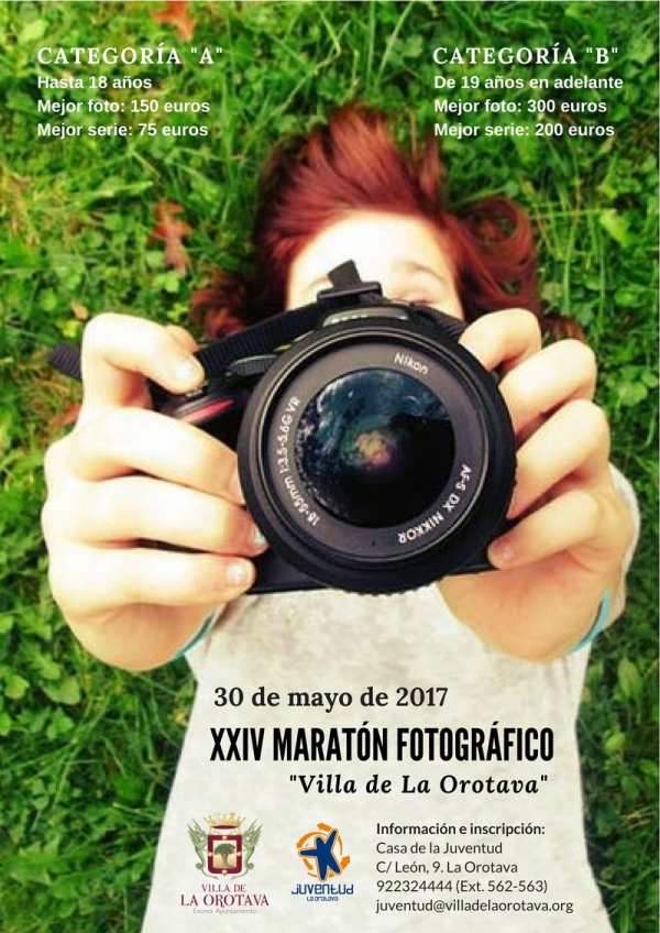 La Concejalía de Juventud del Ayuntamiento de La Orotava organiza la vigésimo cuarta edición del Maratón Fotográfico “Villa de La Orotava”, una propuesta con la que se busca que los aficionados a la fotografía puedan demostrar sus dotes en este arte, al mismo tiempo que descubren una visión diferente de La Orotava, buscando perspectivas y resaltando detalles que habitualmente pasan desapercibidos.