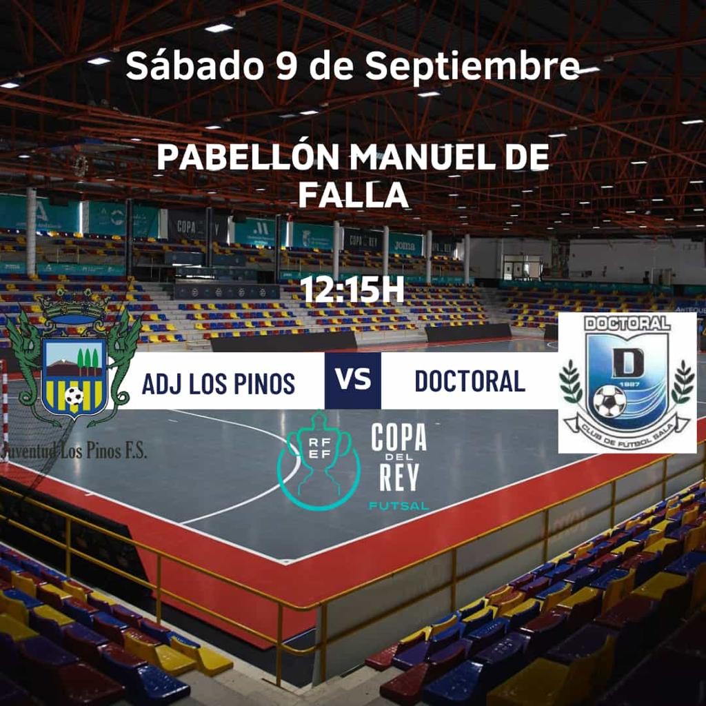 Este próximo sábado 9 de Septiembre, se celebrará la Copa del Rey FUTSAL a las 12:15 horas en el Pabellón Manuel de Falla.  ADJ Los Pinos - Club de Fútbol Sala Doctoral (Gran Canaria)