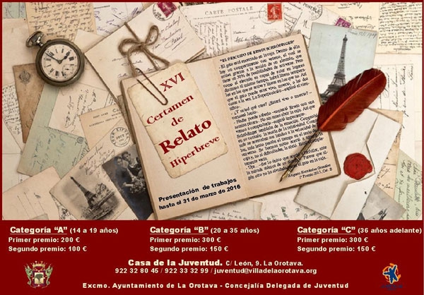 El Ayuntamiento de La Orotava, a través de la Concejalía de Juventud ha convocado por decimosexta vez el Certamen de relatos Hiperbreves.
