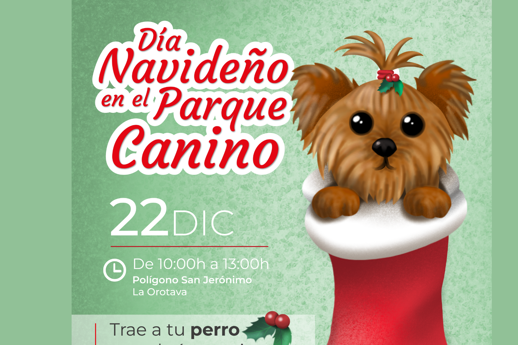 El "Día Navideño en el Parque Canino" se realizará el día 22 de Diciembre en horario de 10:00 a 13:00 en el parque canino del Polígono San Jerónimo.