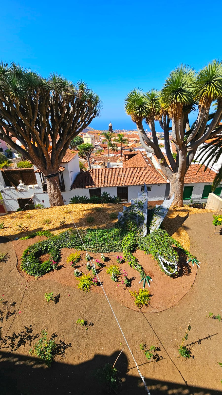 El edil delegado de parques y jardines, Felipe David Benítez, subraya que desde la institución local se trabaja en el constante remozamiento y mejora de los jardines del municipio, y a la par se proyecta el renovar espacios verdes generando que sean atractivos y a la par cumplan requisitos que favorezcan la protección del medio ambiente y sean áreas sostenibles. Entre otras acciones, se ha adecuado el sistema de riego, disminuyendo y adaptándolo a las necesidades hídricas para hacer un uso eficiente del agua y evitar daños a los dragos. También se ha instalado un sistema de inyección de abono a la red de riego, lo que favorece la aplicación de nutrientes que puedan resultar deficientes. Se han eliminado especies vegetales catalogadas de invasoras y se ha colocado mulching (astillado) que favorece el mantenimiento de la humedad, y cuya descomposición ayuda a la mejora del suelo. Por otra parte, se ha llevado a cabo la colocación de plantas autóctonas menos exigentes en requerimientos hídricos, además de aportar mayor biodiversidad al espacio. Asimismo, se ha logrado la mejora general del espacio en el que se desarrollan las raíces de los dragos. En la zona también se colocará un panel informativo.