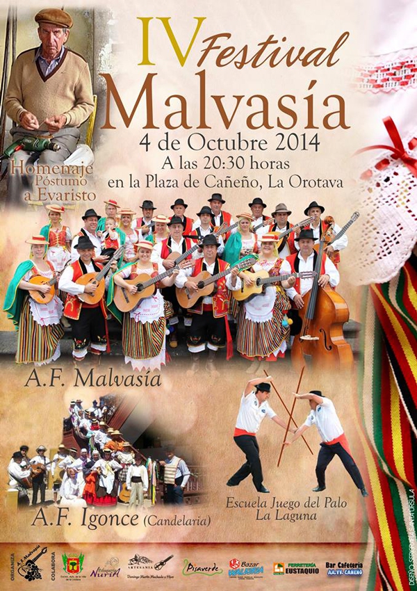 Esta cuarta edición contará con las actuaciones de la A.F. Igonce de Candelaria y la propia A. F. Malvasía que ha preparado un repertorio para la ocasión. Asimismo, habrá una muestra de Juego del Palo de la Escuela Municipal de la Laguna, y además la A. F. Malvasía rendirá un homenaje póstumo al artesano Evaristo Ramos. El acto estará presentado por Maria Cristina Garcia Carballo.