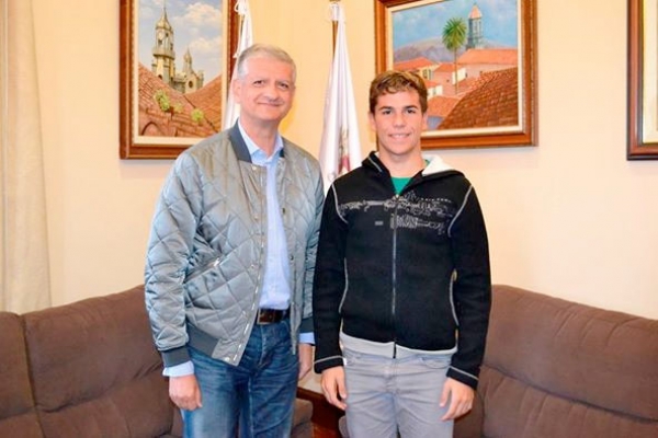 El alcalde de La Orotava, Francisco Linares, recibió al joven villero Aitor Fuentes, y le felicitó por sus éxitos deportivos en Canarias en los diferentes campeonatos de surf celebrados por el archipiélago canario.