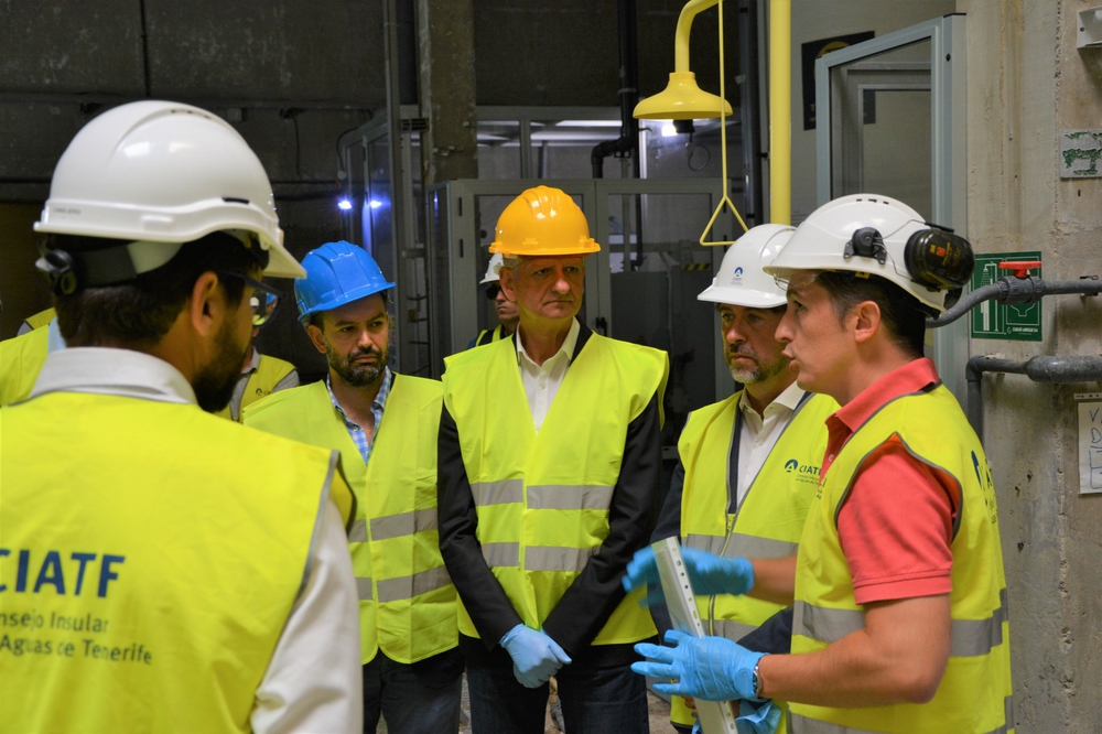 En la mañana de este lunes, 10 de septiembre, el presidente del Cabildo de Tenerife, Carlos Alonso acompañado por el alcalde de La Orotava, Francisco Linares, entre otras autoridades comarcales e insulares; han visitado las instalaciones de la depuradora comarcal Valle de La Orotava en la que se han realizado obras de mejora del saneamiento y depuración del valle por valor de 381.000 euros.