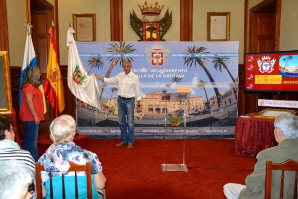 El alcalde de La Orotava, Francisco Linares ha recibido en el Salón Noble de Sesiones del ayuntamiento a más de un centenar de vecinos del municipio tinerfeño de El Rosario que este viernes han realizado una visita con el fin de descubrir los encantos de la villa. El alcalde realizó una explicación de la historia, patrimonio y arraigadas tradiciones de La Orotava.
