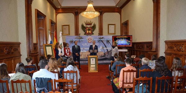 El alcalde de La Orotava, Francisco Linares, recibió en el Salón Noble del Ayuntamiento de La Orotava a los alumnos de intercambio del Colegio Evangelischen Hidehof Gymnasium, de la ciudad alemana de Stuttgart, que participan en un programa de intercambio con el colegio Casa Azul.
