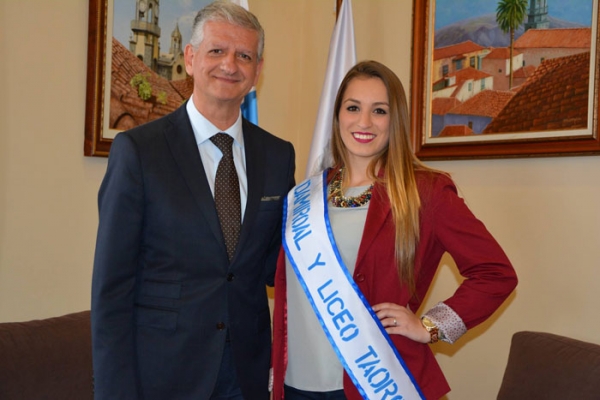 El alcalde Francisco Linares García recibió en la mañana de hoy lunes, en las dependencias municipales, a la joven Sheyla Hernández Zamora, quien representará al municipio de La Orotava en la próxima Gala de Elección de la Reina del Carnaval de Santa Cruz de Tenerife, que tendrá lugar el miércoles 22 de febrero en el Recinto Ferial de la capital.