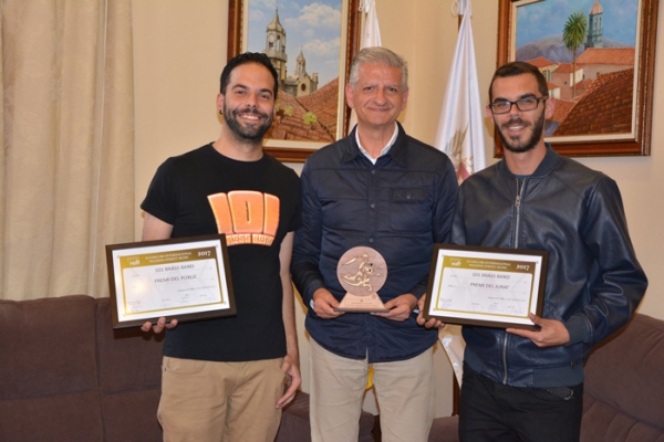 El alcalde Francisco Linares recibió en la tarde de este jueves 4 de mayo a dos miembros de la 101 Brass Band, grupo villero que representó a Canarias de nuevo fuera de sus fronteras, en esta ocasión es el festival internacional Walking Street Music, enmarcado en el Andorra Sax Fest que se celebró el pasado abril en la capital de Andorra. La banda villera se proclamó ganadora en la segunda edición de este festival.