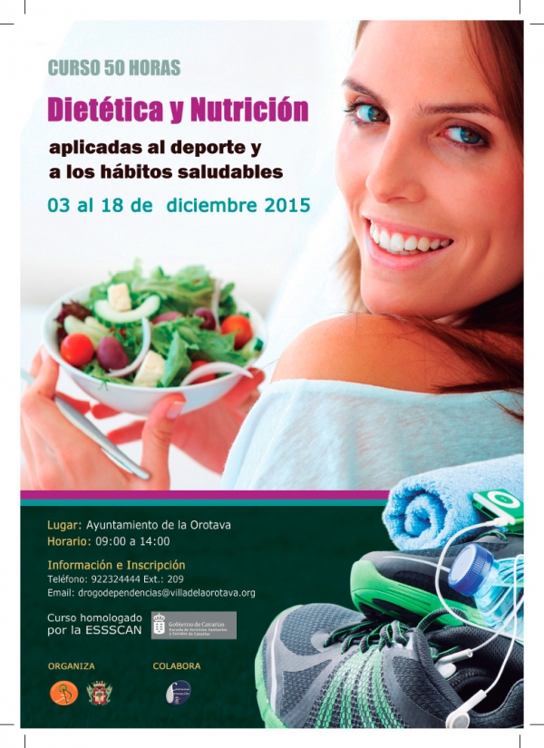 El Curso de Nutrición y Dietética aplicadas al deporte y los hábitos saludables, que tiene 50 horas de duración, está homologado por la ESSSCAN. Las clases se desarrollarán entre el 3 y el 18 de diciembre en horario de mañana, de 9.00 a 14.00 horas, en la Casa de la Juventud de La Orotava.