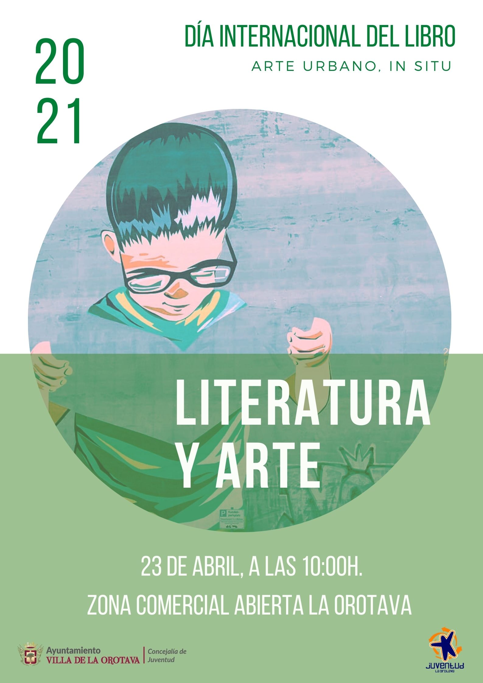 La Concejalía de Juventud del Ayuntamiento de la Villa de La Orotava, que dirige el edil Darío Afonso, anuncia que el próximo viernes 23 de abril, con motivo de la celebración del Día del Libro 2021, ha preparado una actividad, denominada ‘Literatura y Arte’, en la que se expondrá el arte urbano vinculado a algunos de los referentes literarios de Canarias.