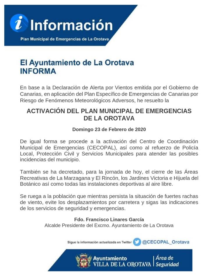 El ayuntamiento activa el Plan Municipal de Emergencias