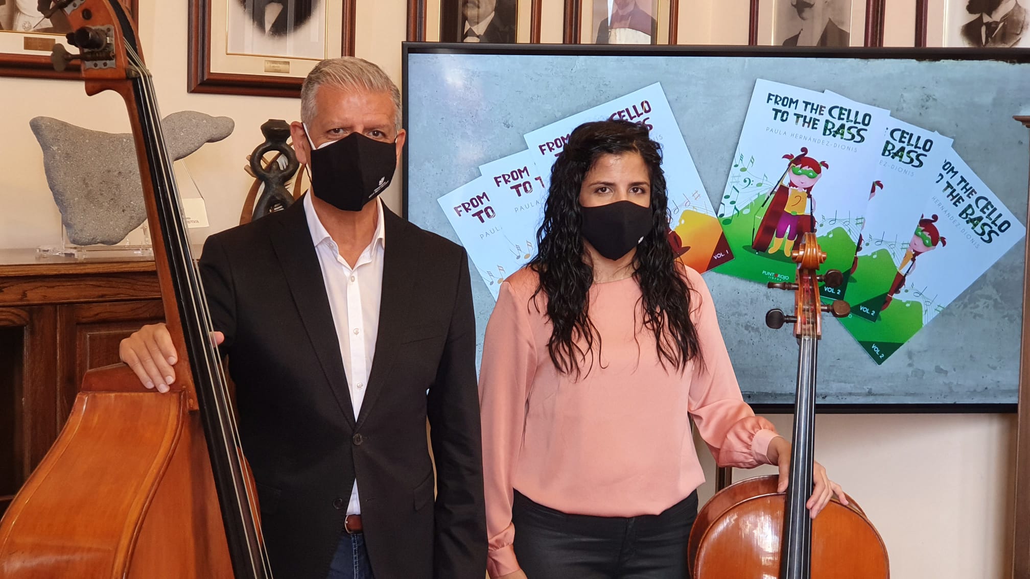 El Ayuntamiento de La Orotava acogió hoy viernes [30 de octubre] la presentación del libro ‘From the cello to the bass’, con el que su autora, Paula Hernández-Dionis, ha recogido una extensa investigación desarrollada en la Escuela Municipal de Música y Danza Villa de La Orotava que se ha plasmado en la primera obra publicada en el mundo sobre la enseñanza simultánea del violonchelo y el contrabajo.