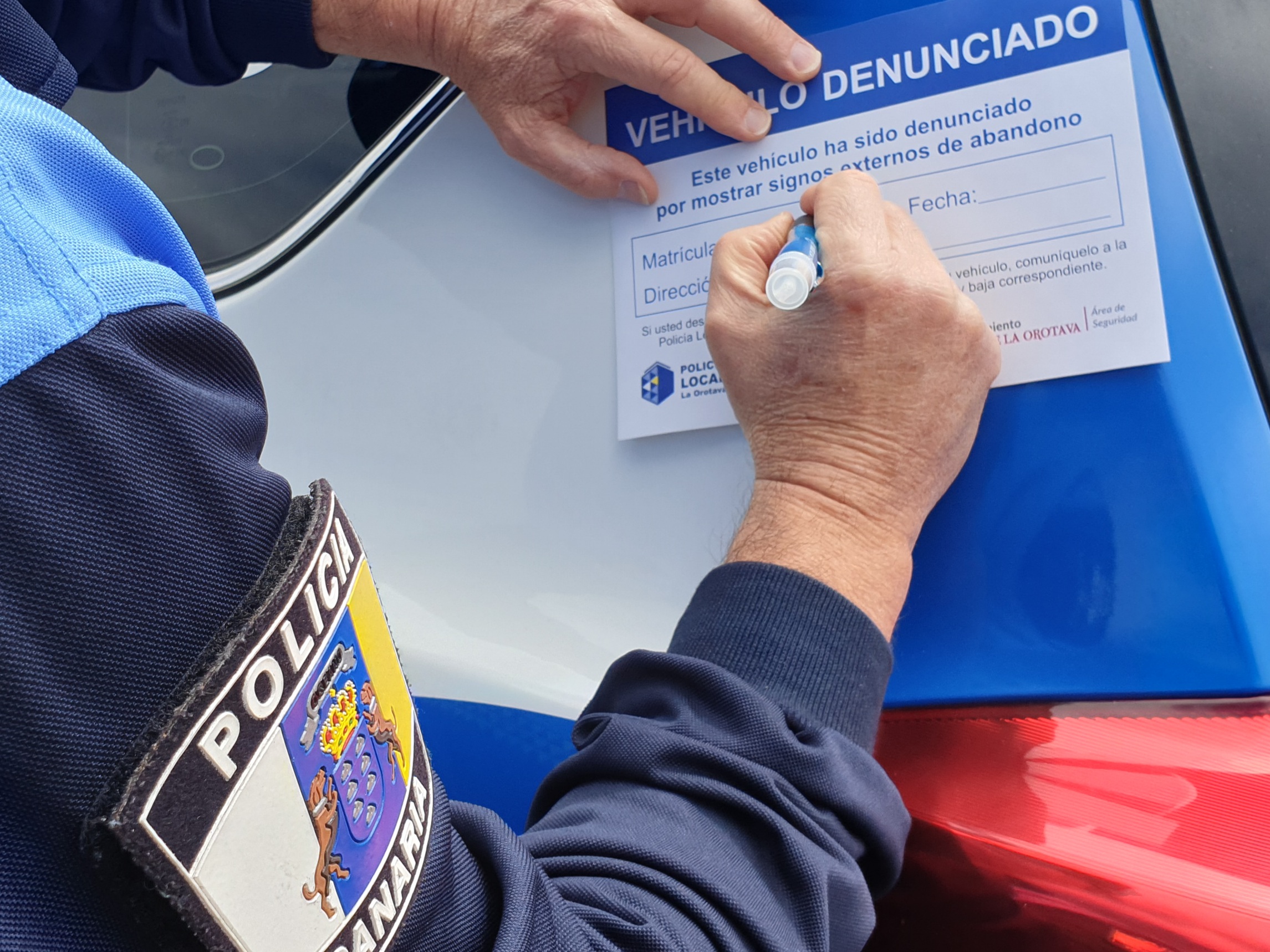 Cuando se inicia expediente a un vehículo por estado de abandono, los agentes de la autoridad colocarán una pegatina al vehículo, informando de que ha sido denunciado por abandono. De esta forma, los vecinos de la zona, así como sus titulares, sabrán que se ha iniciado expediente bajo supervisión de la Policía Local. La actuación se desarrollará cuando el vehículo permanezca estacionado durante semanas en el mismo lugar y presente desperfectos que hagan imposible su desplazamiento por sus propios medios o le falten las placas de matrícula, y también cuando se encuentre estacionado sin la documentación en vigor para circular.