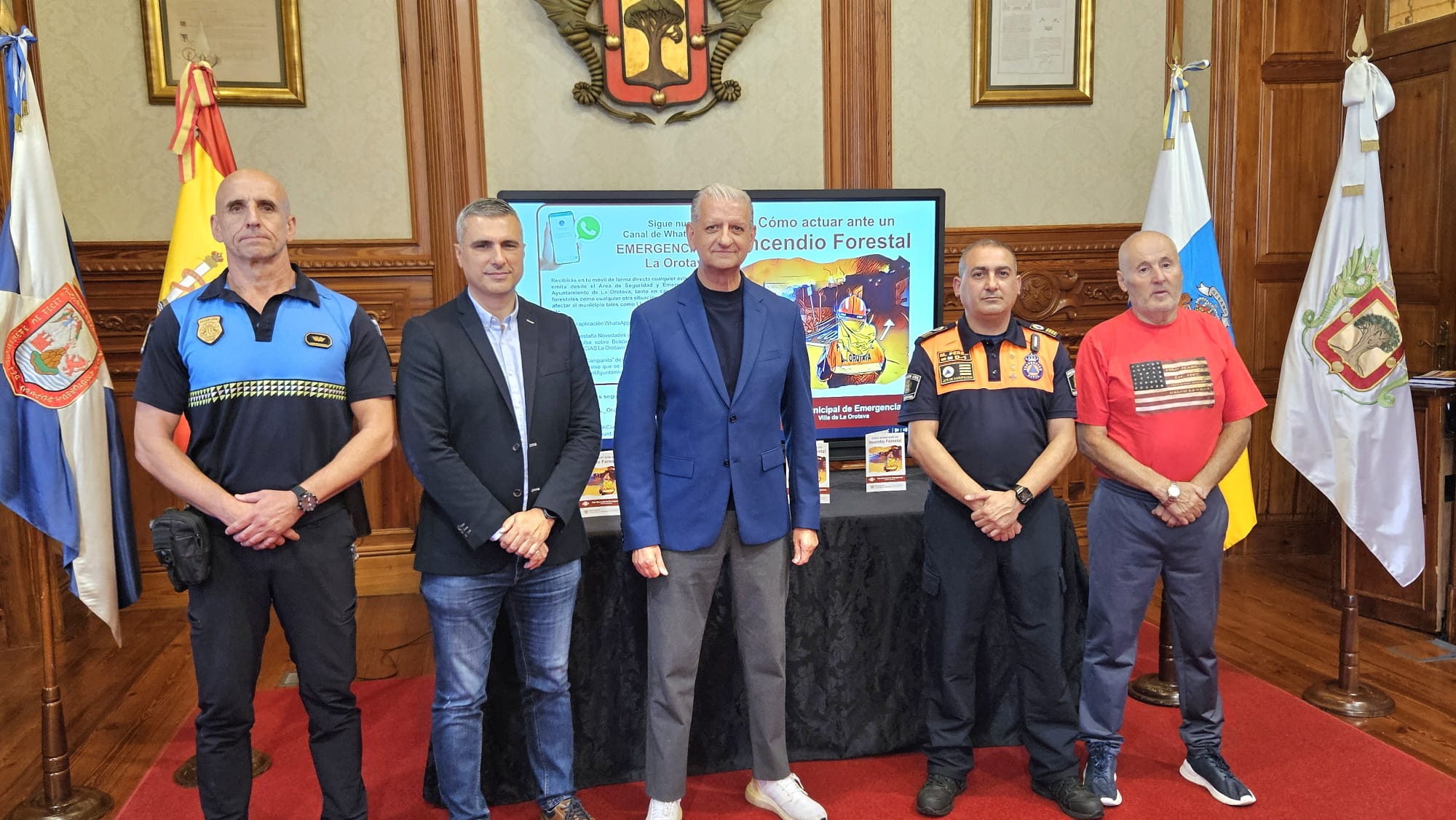 El Ayuntamiento de La Orotava, a través del Área de Seguridad y Emergencias que dirige Narciso Pérez, ha puesto en marcha una campaña de prevención de incendios forestales con el fin de que la población esté informada sobre cómo evitar siniestros de esta índole y, en el caso de que se produzcan, cómo actuar. La iniciativa se enmarca en el Plan Municipal de Emergencias y su objetivo principal “es ofrecer toda la información posible a la ciudadanía para que eviten actitudes o acciones de riesgo que puedan ocasionar incendios, medidas a tomar para no poner en peligro sus vidas y bienes e informar sobre los nuevos sistemas de alerta mediante medios tecnológicos”, indicó el alcalde villero, Francisco Linares durante la presentación del plan, en la que también se contó con el propio edil de Seguridad, el Jefe de la Agrupación de Protección Civil, Miguel Ángel Pérez y el subinspector de la Policía Local, Ignacio Sánchez.