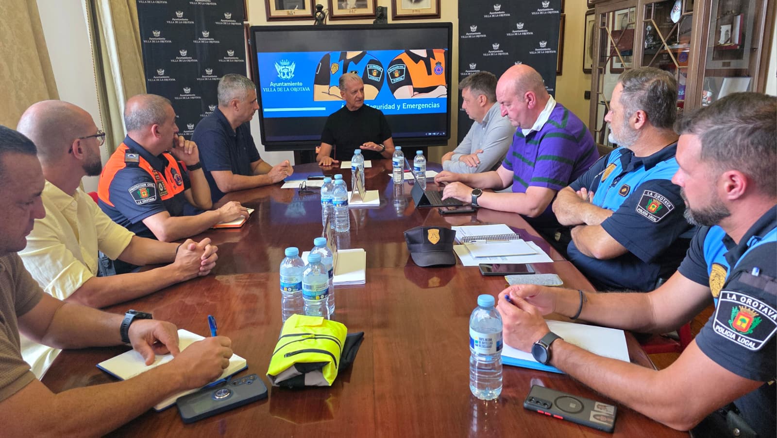 En la reunión a la que asistió el Director Insular de Emergencias, Iván Martín, así como técnicos del Cabildo de Tenerife, se contó también con los técnicos adscritos al CECOPAL de La Orotava, así como representantes de Policía Local y Protección Civil.