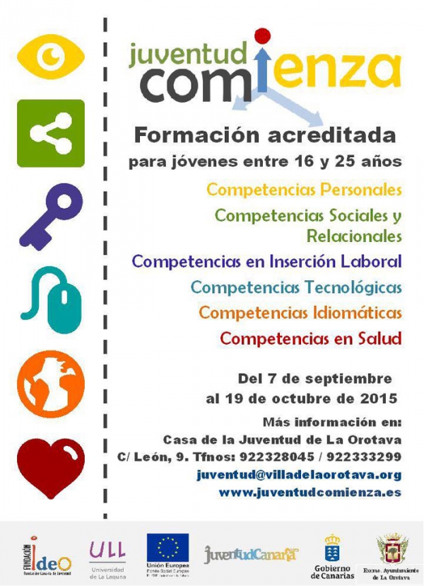 El área de Juventud del Ayuntamiento de La Orotava se suma ahora a esta iniciativa formativa que se desarrollará en la villa entre 7 de septiembre y el 19 de octubre de 2015.