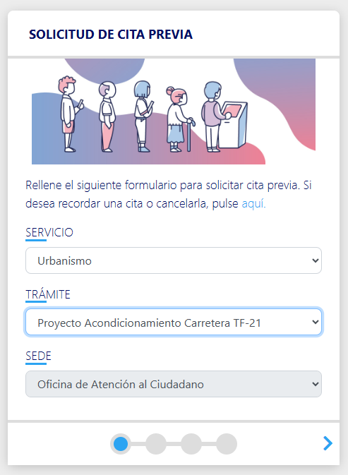 Para solicitar cita previa pulse en el siguiente enlace: Cita Previa del Ayuntamiento de la Orotava, seleccionando las siguientes opciones: