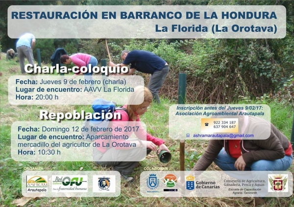 Más información e inscripción para la repoblación: Asociación Agroambiental Ashram Arautapala: Teléfono: 922 334 187 / 637 904 647 y en el correo electrónico: ashramarautapala@gmail.com. Oficina de la Participación y el Voluntariado Ambientales: Teléfono: 922 310 578 / 638 792 149 y correo electrónico: voluntariadoambiental@idecogestion.net. Facebook: voluntariado y participación ambiental de Tenerife.