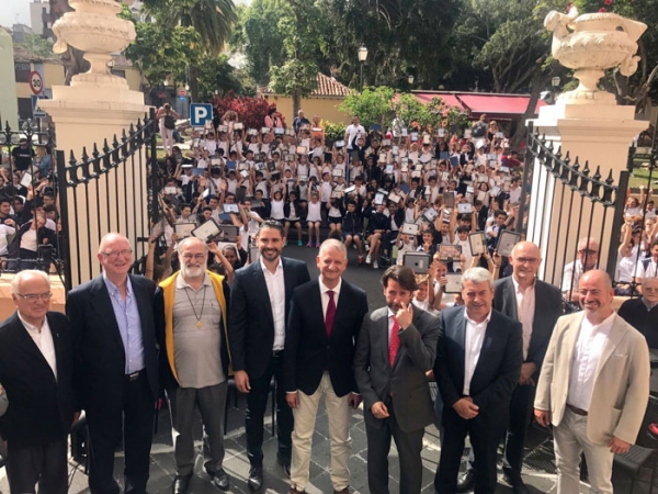 El acto, con el descubrimiento de la placa distintiva, se llevó a cabo en la parte exterior del colegio, ante numerosos alumnos y sus familias. También contó con la presencia de autoridades como el presidente y vicepresidente del Cabildo de Tenerife, Carlos Alonso y Aurelio Abreu, respectivamente, y el alcalde de La Orotava, Francisco Linares, así como con el Inspector Salesianos España, Cristóbal López, y el Team Manager bananaEdu Apple, Carlos Gallardo