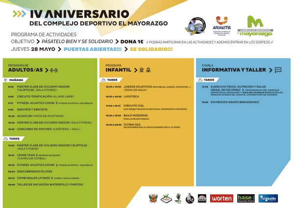 El jueves 28 de mayo se celebrará el cuarto cumpleaños de estas instalaciones con una jornada de puertas abiertas de carácter solidario, que incluirá actividades para todas las edades y gustos, en horario de mañana y de tarde.